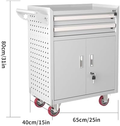 Introducing our premium Tool Chest, expertly designed for both professional and DIY enthusiasts. Made from durable cold-rolled steel, this tool chest ensures long-lasting performance and reliability. With dimensions of 65x40x85cm (25.5x15.7x33.4in), it offers ample storage space for your tools and equipment while maintaining a compact footprint. The Tool Chest features a 10x10mm square hole hanging board, allowing for customizable organization of your tools. Its 0.8mm thick surface, treated with electrostatic spraying, provides a sleek finish that resists scratches and enhances durability. The thoughtfully designed interior maximizes storage efficiency, making it easy to find and access your tools when you need them most. Equipped with 4-inch PU wheels, including 2 fixed wheels and 2 swivel wheels, this tool chest is highly mobile, allowing you to transport your tools effortlessly around your workspace or garage. With a load-bearing capacity of 300kg (660lbs), it can accommodate heavy-duty equipment without compromising stability. Whether you're setting up a professional workshop or simply need a reliable storage solution for your home projects, our Tool Chest is the perfect choice. Organize your tools effectively and enhance your productivity with this essential addition to your workspace. Upgrade your tool storage today and experience the convenience and efficiency our Tool Chest offers.