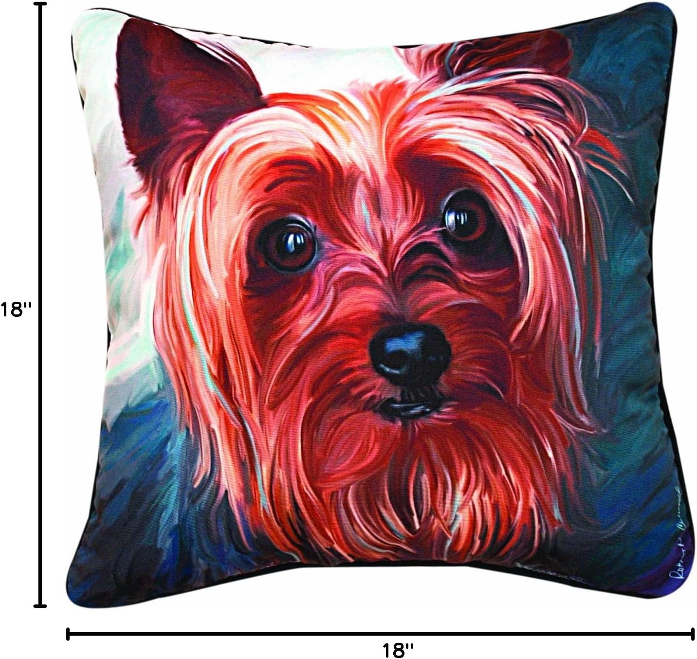 Artist Robert McClintock's collection, Paws & Whiskers, is a vibrantly colorful line of pillows and totes featuring dog and cat breeds. Capturing the essence of an animal through irresistible expressions, poses and typical character traits is the spirit behind these sought after home decor accessories. What better way to express that you love your 4-legged companions? Made in the USA from easy-clean 100% polyester fabric and printed with a charming picture pet owners can clearly identify with. Accent pillow is 18" square, stuffed with recycled fiber filling and has a solid black cotton back. Proudly brought to you by Manual Woodworkers & Weavers, a family-owned business ranked high in quality home decor by decorating magazines. Based in the mountains of Western North Carolina, the company continues to operate with a commitment to providing quality products and first-rate customer service since its beginnings in 1932. Check out Manual Woodworkers and Weavers extensive line of home décor, tapestries, wall plaques and hangings, women's fashion accessories and bags, gift and entertaining collections, indoor / outdoor pillows, and quality seasonal items.