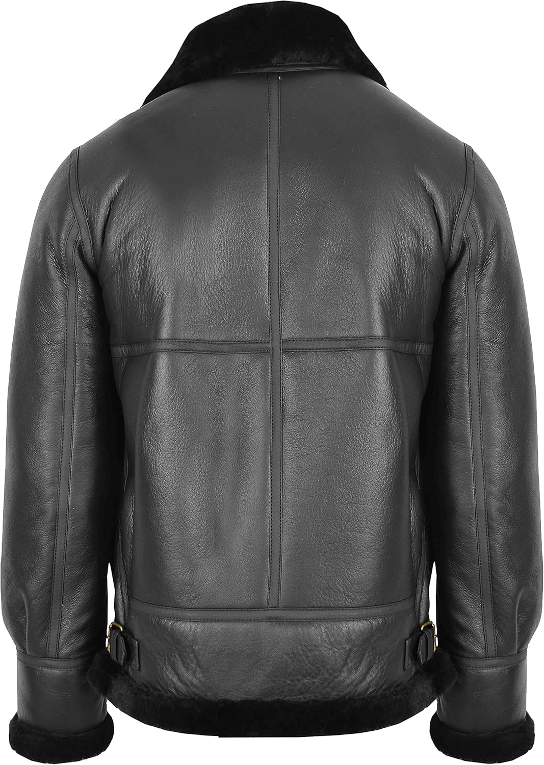 A timeless super iconic real sheepskin flying leather jacket for men, this jacket has all the features that are desired by any aviator jacket lover, presented in a stunning nappalane finish, comfortable & cozy keep you warm throughout the cold winter months. It's a onetime investment garment and a lifetime companion. Hand crafted from a luxurious thick double face genuine sheepskin with fully shearling lined inside, complemented with a fitted tailored cut. Featuring a heavy duty YKK middle zip fastening, two outer hand warmer pockets, folding lapel or pop-up collar with a buckle fastening to cover you from the weather elements, adjustable buckles at the side of the waist to enhance the fit, foldable cuffs, durable reinforced stitching to stand the test of time. fully lined interior with a soft and chunky genuine shearling, one zipped pocket inside. 100% Real Leather. Free and fast UK mainland delivery, worldwide delivery available.