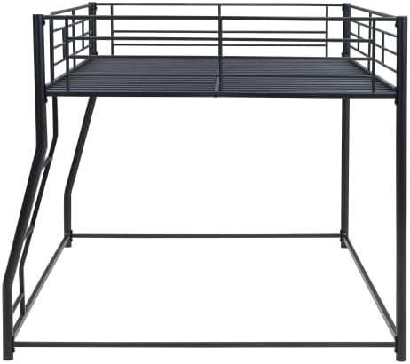 Bellemave Metal Floor Bunk Bed, Full XL over Queen Bunk Bed with Ladder and Guardrail, Metal Floor Bunk Bed for Teens and Adults The metal floor twin xl over queen bunk bed is elegant and functional making it a perfect addition to any room. It comes with a contemporary design and durable steel frame construction ideal for any modern setting. The space-saving design of this bunk bed allows you to maximize your room space as well. Inclined ladder reduces discomfort on the feet. This bunk bed can make a great choice for your kids' room as it increases the fun during bedtime. Weight & Dimensions: Product Dimension: 82.4''L x 62.4''W x 53.7''H Product Weight: 69 LBS Detail Product Dimension: Please refer to the size image Number of Package *1 : 81.1 * 15.55 * 5.71 in. 69.45 LBS Weight Capacity: Upper Bed: 250 LBS Bottom Bed: 400 LBSNumber of Slats: 21pcs Recommended Mattress Thickness: 6-8'' Specifications:Product Type: Metal Bunk Bed Size: Full XL over Queen Color: Black Product Material: Metal Box Spring Required: No Mattress Included: No Assembly Required: Yes Country of Origin: China Notes:-Manual measurement has been used,there may be some reasonable error. -All the pictures are taken by actual samples, slight chromatic aberration may occur due to lighting or display.