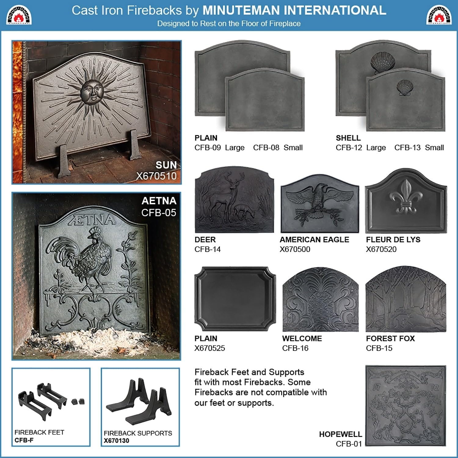 Based on a 19th Century design from the Aetna Fire Insurance Company of Hartford, CT (the ancestor of the current Aetna Life Insurance Company) this fireback design features a charming piece of Americana for your hearth. This firebacks is intended to rest right on the floor, at the back of the hearth. All our firebacks are designed for use with both gas logs and wood burning fireplaces.