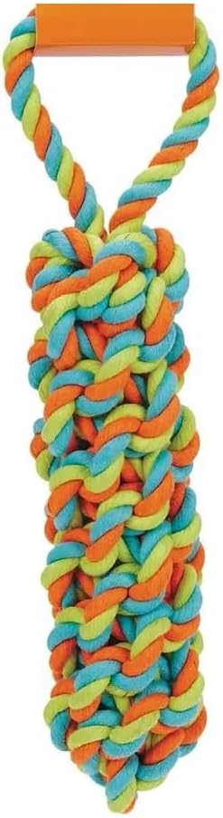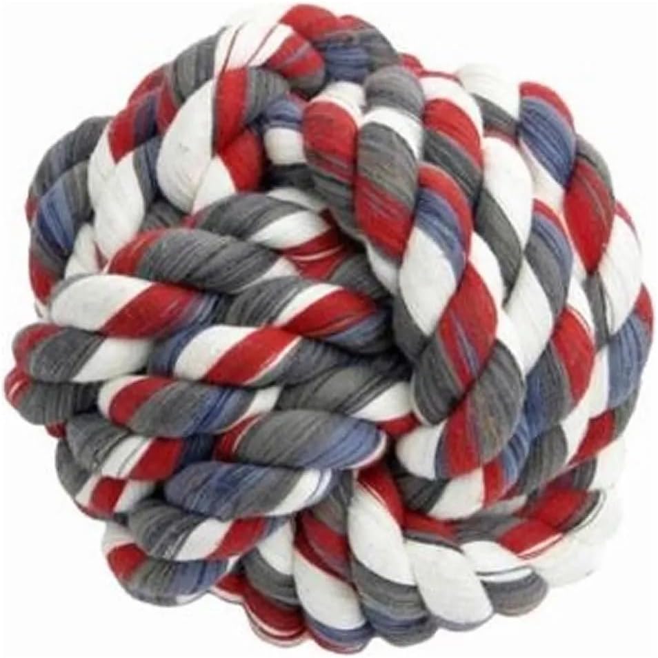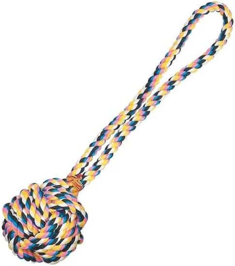 Durable Colorful Bright Knotted Tug and Play Dog Toys Teeth Cleaning Rope Our Rope Tug Toys are constructed from tough cotton rope, knotted for tugging or throwing. Designed to be a rugged knot for sailors, they’re ideal for aggressive chewers. Will really stand up to abuse. Twisted rope helps to clean teeth for improved oral hygiene. Material: Poly/cotton blend. Available in: Knot Ball (3.75") Orange-Blue (13") Red/White (15") Multi-color (17") Multi-color (21") Also available in a full set of All 5 Toys! Caution: Do not allow pet to play with toy if it becomes damaged. Supervision is advised.