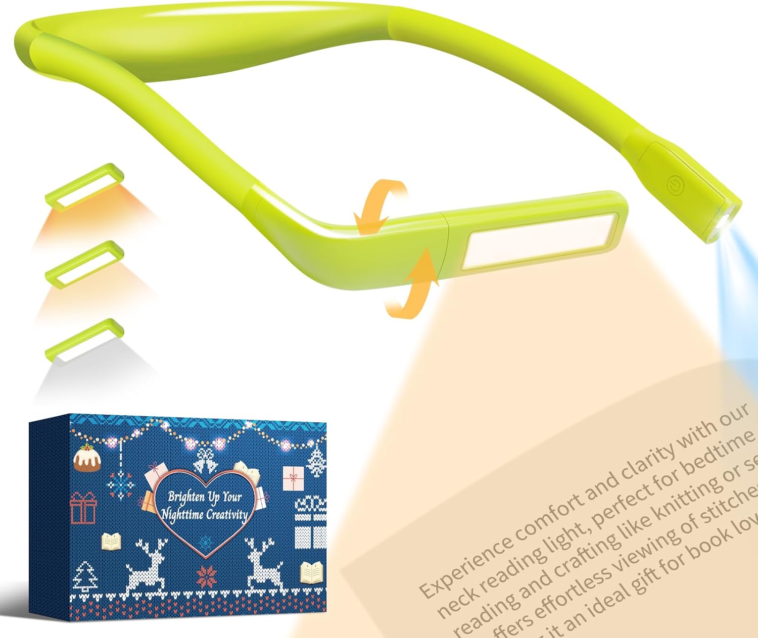 Neck Reading Light, Dual-Lamp with Wide Floodlight for Eye-Friendly Reading in Bed, 2000mAh Neck Lamp, Christmas Gifts for Book Lovers, Knitters & Crafters