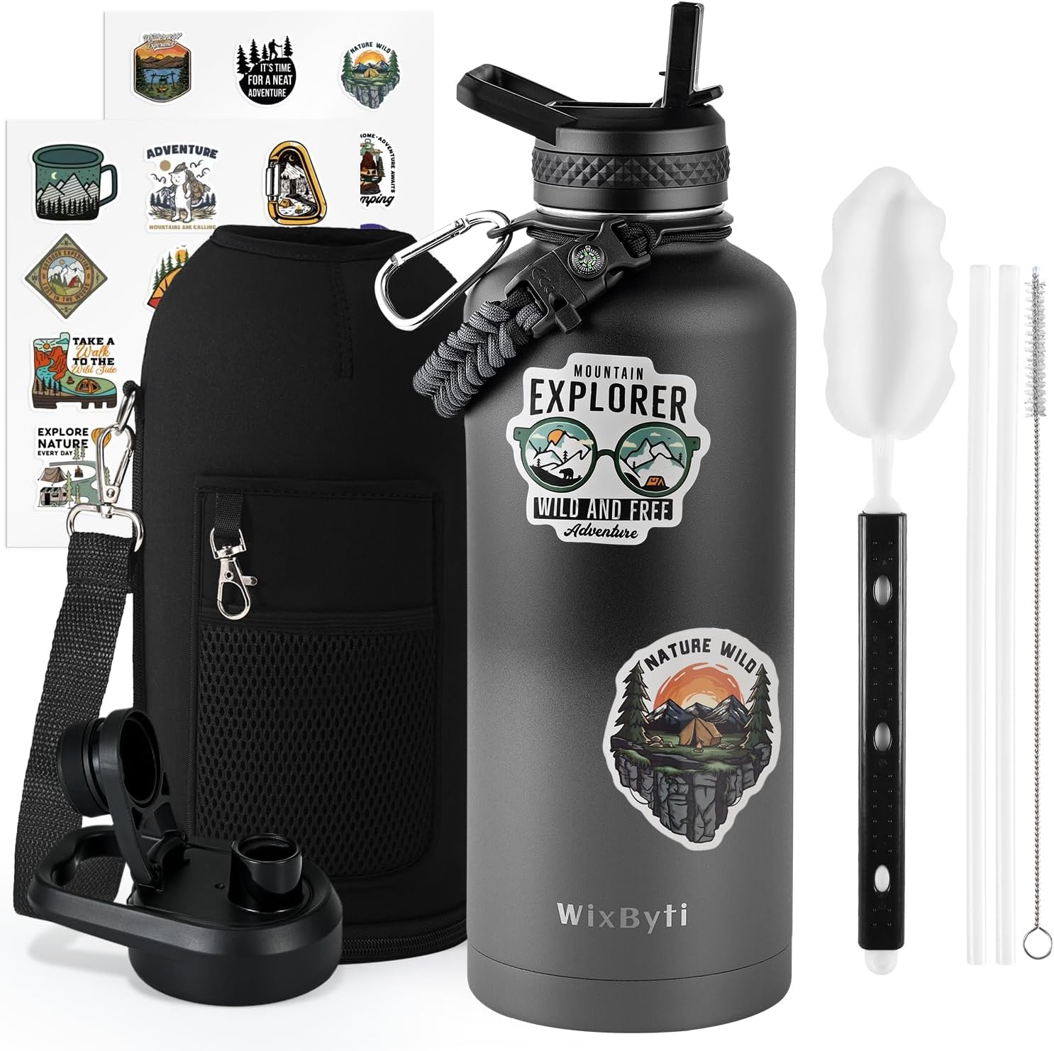 | Included Components | Carrying Pouch with Adjustable Strap, Paracord Handle, Spout Lid, Straw Lid with 2 Straws & 1 Straw Brush, Water Bottle Stickers |