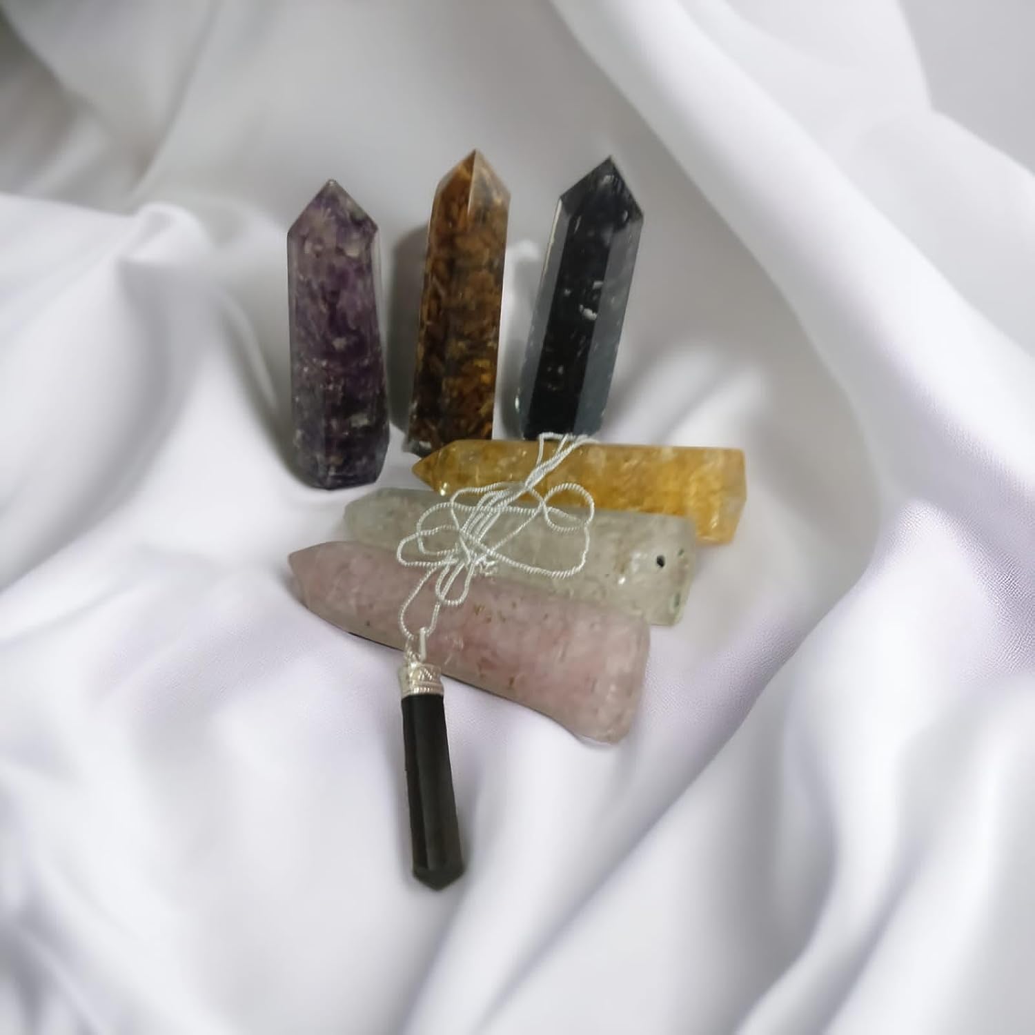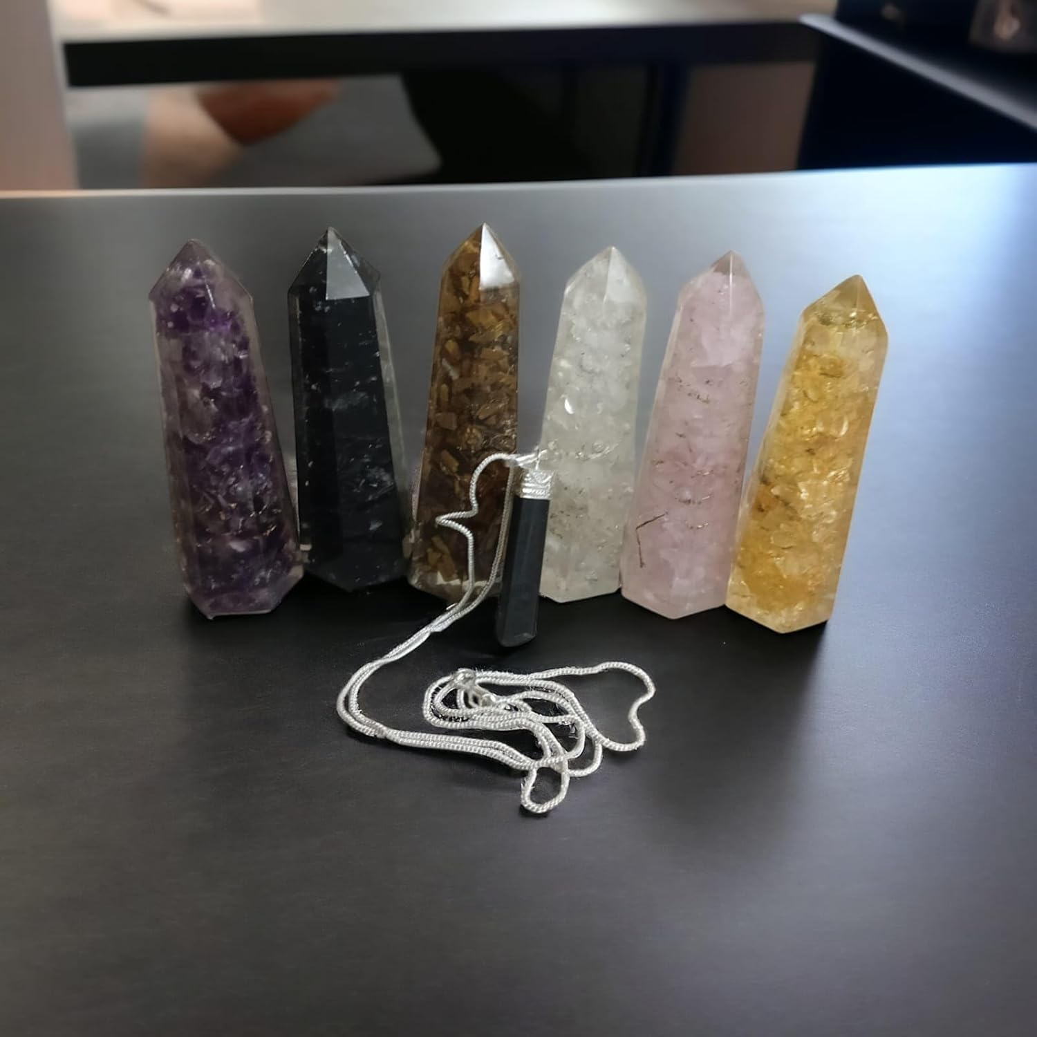 ๐ Orgonite Crystal Wands โ Set of 6 Powerful Healing Crystals for Positive Energy & Spiritual Protection ๐ This premium set of 6 Orgonite Crystal Wands is designed for energy healing, chakra balancing, and spiritual well-being. Each wand is made with natural high-energy crystals, including Amethyst for intuition, Black Tourmaline for protection, Citrine for abundance, and Clear Quartz for energy amplification. Whether used for meditation, Reiki, or aura cleansing, these crystal wands will restore balance & harmony to your energy field. ๐ก๏ธ Shields Against EMF & Negative Energy โ Provides a protective barrier against stress & radiation. โก Orgone Energy Infused for Maximum Power โ Helps in clearing blockages & amplifying positive energy.