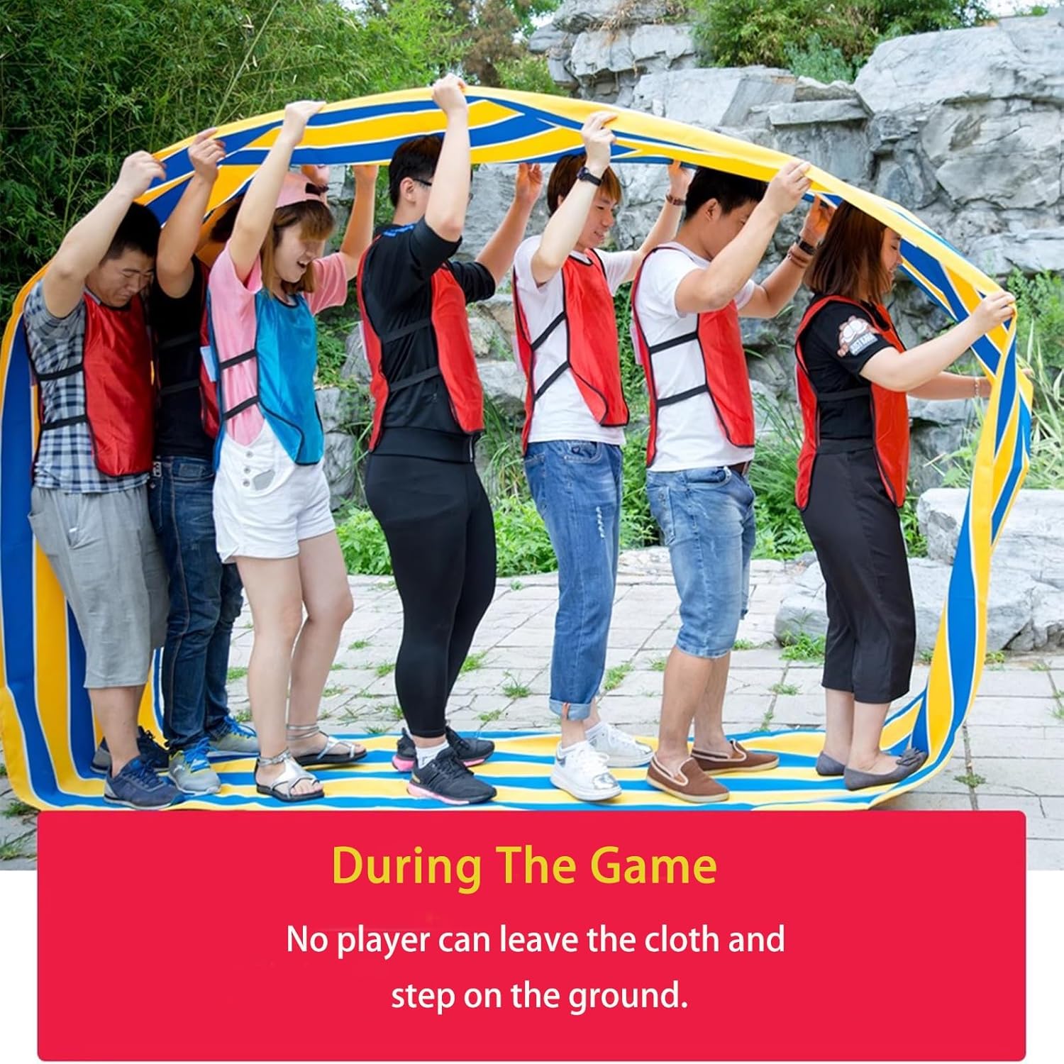 Spark joy at your next family gathering with this vibrant teamwork mat!Whether you’re hosting a neighborhood block party, planning a school field day, or keeping cousins entertained at reunions, this mat turns coordination into laughter-filled memories. The bright color stripes keep everyone engaged, while the rugged Oxford fabric handles even the most enthusiastic jumps and tumbles. Parents love how easily it wipes clean after popsicle spills or cookie crumbs, and childs can’t get enough of racing together – a perfect blend of play and skill-building for all ages! Technical Specifications:Material: Oxford Fabric6M Size: 6m x 0.45m (19.68ft x 1.48ft)8M Size: 8m x 0.45m (26.24ft x 1.48ft)Colors Included: Rainbow, Blue-yellowScope of application: 6M fits 4-6 participants; 8M suits 6-9 participants ; (depending on height/weight)Package Includes:1 x Teamwork Mat (6M or 8M)