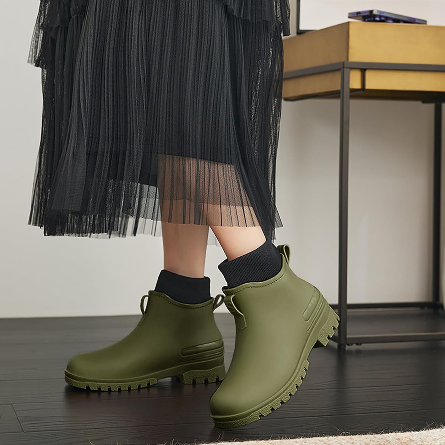 Elevate 2025 outdoor wear with these waterproof ankle boots women—where functionality meets fashion for fishing, gardening, and work. Crafted with 100% waterproof rubber, they lock out moisture to keep feet dry as rain shoes women or mud boots women waterproof, perfect for wet job sites or weekend angling. The non-slip sole delivers traction on slippery surfaces, fitting non slip work boots women core demands, while the lightweight design avoids fatigue during all-day wear. As wide width boots for women, they accommodate diverse foot shapes, blending comfort with practicality. Stylish ankle bootie silhouette pairs seamlessly with jeans or workwear, transitioning from garden shoes for women waterproof to deck boots women for boating. Whether tending to crops, commuting to work or running errands, these boots balance durability, style, and inclusivity—ideal for active women seeking reliable waterproof shoes for women.