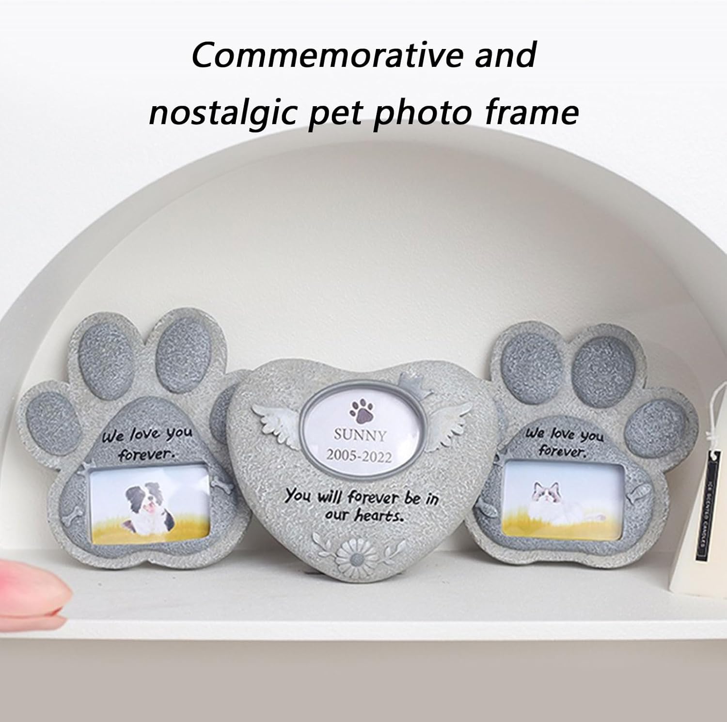 Resin Pet Memorial Photo Frame With Animal Theme Design Keepsakes Tomestone Home Backyard Decors For Pet RemembrancesFeatures:Crafted from resin, this pet memorial Tombstones combine durability with warm design, featuring carved and dog shape that resist and fading for longlasting tributes.The intricate carving technology bring beloved pet to life, while display functionality allows seamlessly transform between tabletop showcase and wall mounted decors.Designed for grieving pet owners and animal lovers seeking meaningful way to memory depart companion through personalizing home memorials.Perfectly for creating touching memorial display on bedside tables, fireplaces mantels, or dedicated pet memory wall in living space and home office.Safe resin construction ensures safe coexistence with and pets, while customizable sizing option transform cherished photos into enduring tributes for unique household storytelling.Specifications:Component: ResinProduct Size: Approx. 01 size 14.5x15.5cm/5.71x6.1inch, 02 size 15x15cm/5.91x5.91inch, 03 size 12.5x15cm/4.92x5.91inchType: 01/02/03Package Includes:1PC Pet Memorial TombstoneNote:Please allow 0-1cm error due to manual measurement.Due to the differences between different monitors, the picture may not reflect the actual color the item