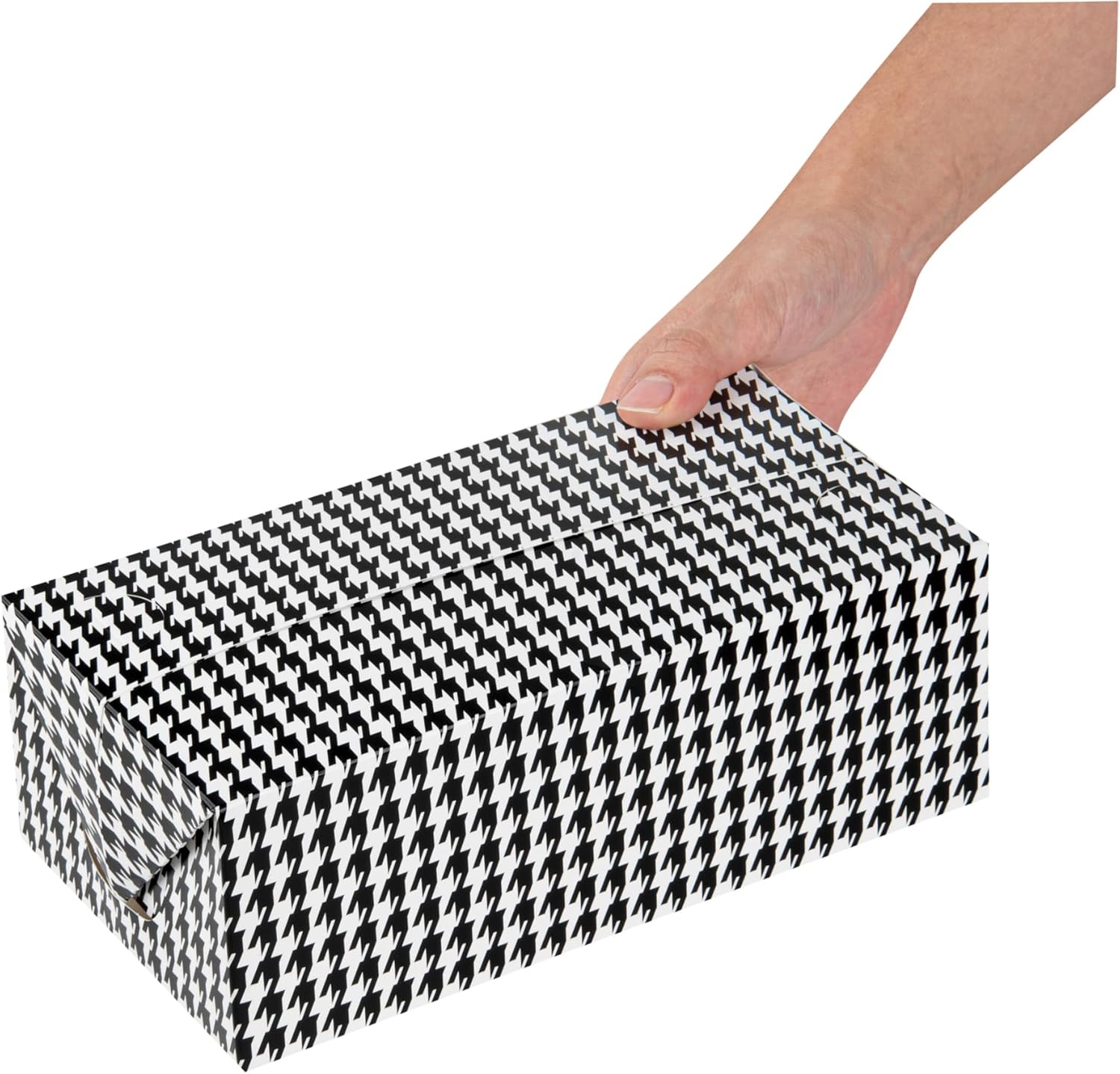Ensure seamless meal transport with leakproof packaging. The Bio Tek Spill-Resistant Paper Takeout Box boasts a fast top closure that ensures a secure seal, allowing foodservice establishments to streamline packaging processes and safeguard meals during delivery. With a generous 71-ounce capacity, this greaseproof takeout container accommodates large meals or combo offerings, while its greaseproof lining prevents oil leakages, maintaining food freshness and quality. The stylish black houndstooth pattern enhances brand presentation, making it an attractive choice for upscale takeout services. Constructed from recyclable paper, this freezer-safe takeout box minimizes waste and supports eco-friendly initiatives, appealing to environmentally-conscious consumers. Measuring 8.9 inches in length, 4.9 inches in width, and 3.1 inches in height, this box provides reliable support for various food items, reducing the risk of leaks or spills. Elevate your foodservice operation's packaging solutions by choosing this versatile paper takeout box. Each order includes 100 Bio Tek Spill-Resistant Paper Takeout Box.