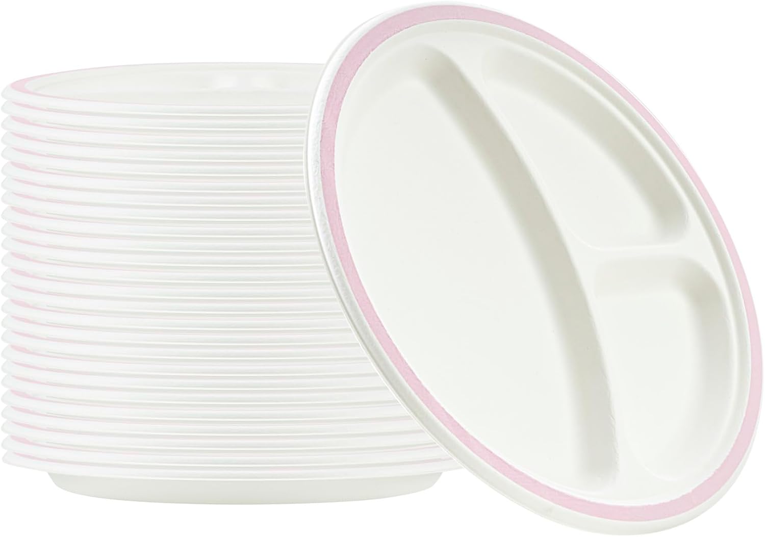 Enhance your dining experience with elegance. The Pulp Safe Bagasse Plates, featuring a charming blue rim, offer a durable and sustainable alternative to traditional compostable plates. Crafted from sugarcane bagasse, these microwave-safe bagasse plates provide a sturdy yet eco-conscious option for busy kitchens that require quick meal reheating. With a diameter of 10.15 inches, these round disposable plates are thoughtfully designed with three compartments, ensuring food items are kept separate to prevent flavor mixing while maintaining an elegant presentation. Additionally, the freezer-safe build of these plates preserves food quality, ensuring versatility from freezer to table. Elevate your foodservice operations with these cold food-friendly, and hot food-friendly plates, perfect for outdoor events or quick-service restaurants aiming to reduce their environmental footprint. Each order includes 100 Pulp Safe Bagasse Plates.