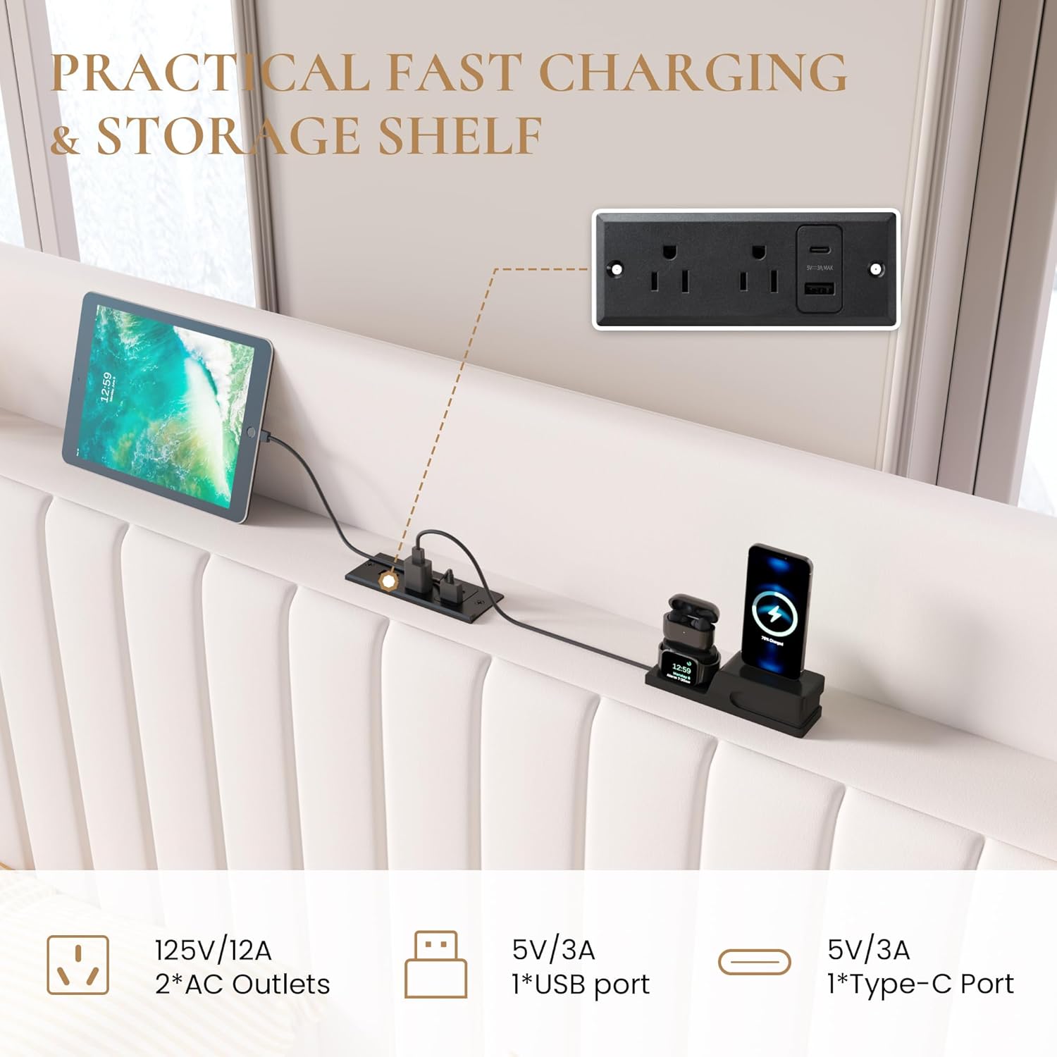 | Other Special Features of the Product | Charging Station, Lift Up Storage, Squeak Resistant, Storage Headboard, USB Port |