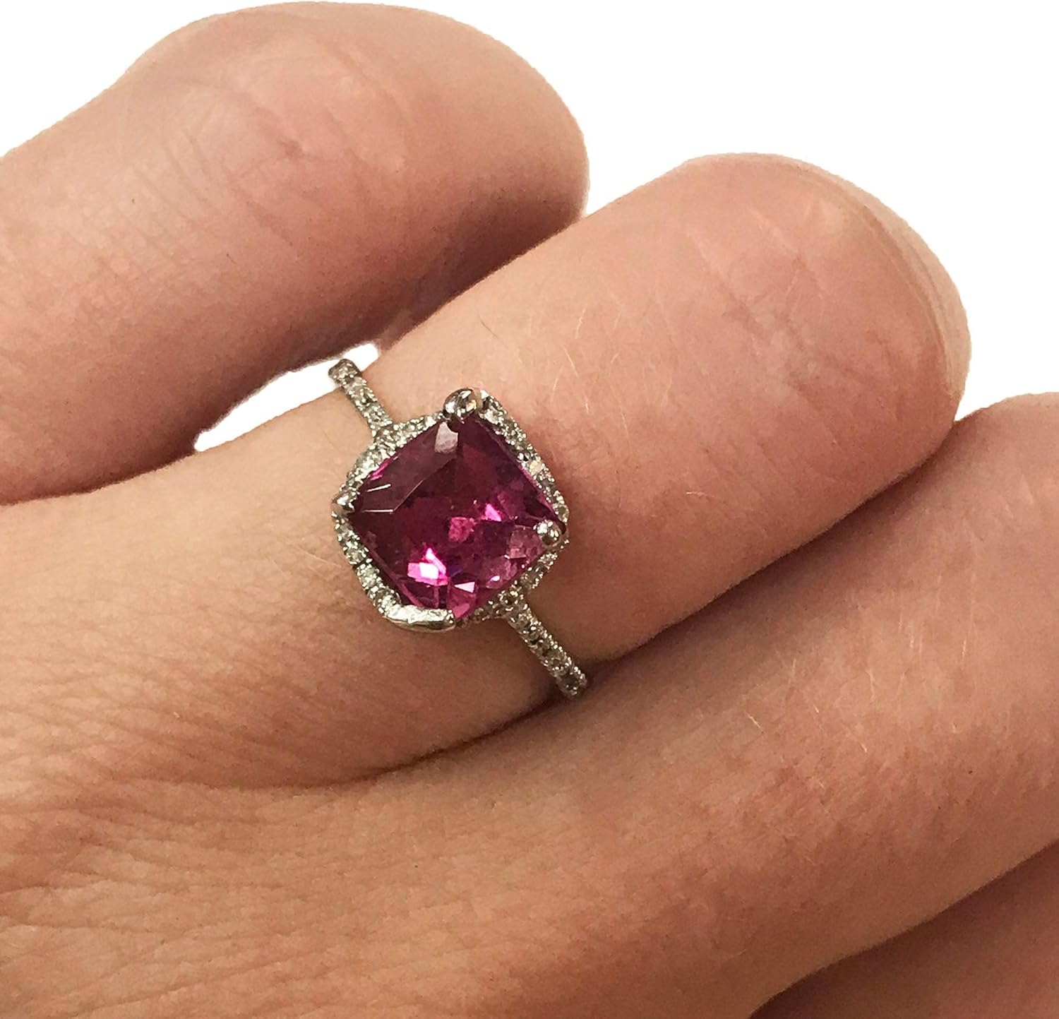 ▶ PRODUCT DETAILS: ◈ Handmade in the USA ◈ Condition: New ◈ Style: COLDIA486 ◈ Total Ct Wt: 2 Carat ◈ Total Weight: ~ 2 Grams ≫ Diamonds ◈ Diamond Carats: 0.25 Carat ◈ Diamond Cut: Round (40) ◈ Diamond Color: G-H ◈ Diamond Clarity: SI1-SI2 ◈ Diamond Type: 100% Natural Earth Mined ≫ Gemstones ◈ Gemstone: Tourmaline ◈ Gemstone Carats: 1.75 Carat ◈ Gemstone Cut: Cushion (1) ◈ Gemstone Color: Pink ◈ Gemstone Clarity: Clean ◈ Gemstone Type: 100% Natural Earth Mined ≫ Setting ◈ Metal: Solid 14k or 18k Gold available ◈ Metal Color: White, Yellow or Rose Gold available ◈ Setting Type: Prong & Pave ◈ Width: 9.5 MM / 0.37 Inch