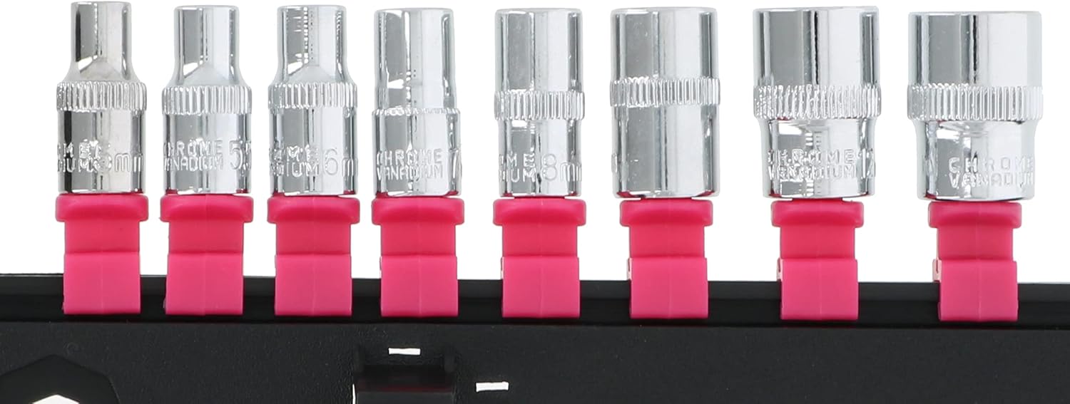 For tightening and loosening bolts and nuts; Sockets with knurling make it slip resistant; Quick release handle makes it easy to release sockets; Double molded handles make it easy to grip