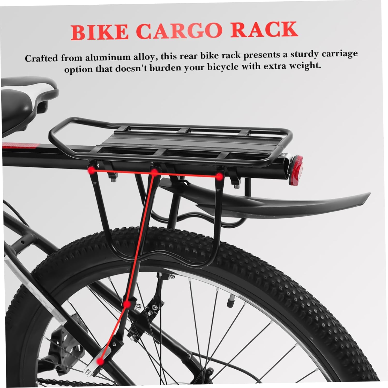 Package List 1 x set of bike rear rack Features -Flexible mounting: With its flexible attachment system, the bike luggage rack conforms to different bike frames, featuring broad compatibility and tailored fitting Bike Luggage Rack. -Load capacity: around 25KG Bike Luggage Stand -Note: fit seat post with a diameter under 32cm Bike Cargo Rack. -Enhanced visibility: Rear-facing reflectivity on the bike cargo rack heightens visibility for cyclists in dim lighting, augmenting safety Bicycle Rear Seat Frame. -Size:54.00X35.00X14.00cm/21.22X13.76X5.50in Luggage Rack For Back Of Bike -Material:Aluminium alloy Bike Rack For Back Of Bike -Color:Black Bike Cargo Bag Rear Rack -Loading capability: Engineered to bear heavy loads safely, this bike rack enables riders to confidently transport cargo with both convenience and stability Bicycle Cargo Rack. - defense: The rear included repels water and mud splashes, ensuring you remain clean and comfortable during rainy rides Mountain Bike Rear Seat Rack. -Strong yet lightweight: Crafted from aluminum alloy, this rear bike rack presents a sturdy carriage option that doesn't burden your bicycle with extra weight Bike Accessory.Goods DescriptionBike Luggage Rack Upgrade your cycling experience with our rear cargo rack, constructed from lightweight yet sturdy aluminum alloy.Bike Rack For Back Of Bike Designed to include an adjustable rear and a high-visibility reflective tail, this rack brings not only added storage capacity but also enhanced safety during low-light rides