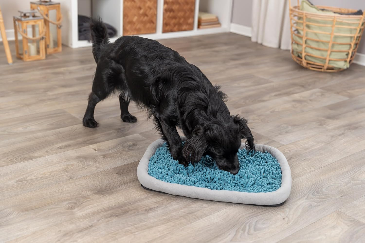 The TRIXIE Dog Activity Snuffle & Seek Plate - the all-in-one solution to turn mealtime into a stimulating game for dogs and cats! This interactive snuffle mat satisfies your pet's natural foraging instincts and keeps them mentally and physically engaged while they search for hidden treats. The Snuffle & Seek Plate is not just a fun game; it also promotes slower eating, preventing overeating and bloating, leading to better digestion. Additionally, the engaging activity helps release pent-up energy and alleviate boredom, a common cause of destructive behavior. Made with a gentle, dog-safe felt, this slow feeder is suitable for all life stages. It has a removable tray to prevent crumpling and a non-slip base for secure playtime. The TRIXIE Snuffle & Seek Plate even features ties to anchor it to surfaces, and for easy cleaning, it's machine washable!