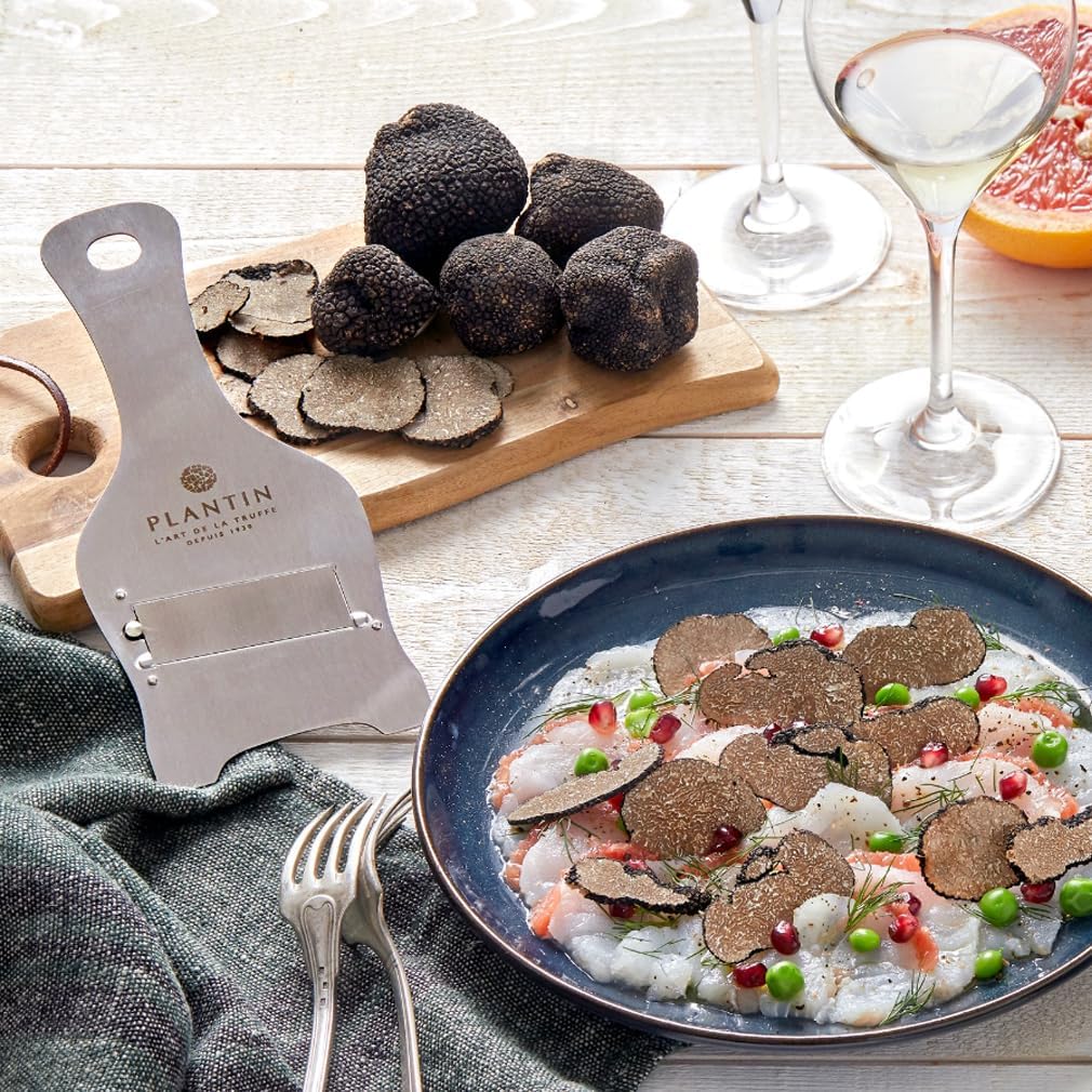 Excellence drives PLANTIN. Its team is constantly seeking the best truffles, which are then perfected thanks to skilful test cutting (canifage) and the expertise of PLANTIN’s Truffle Masters, who are at the head of the production facility. Among fresh truffles, the black truffle (Tuber melanosporum) is the most emblematic of all. It’s nicknamed the “black diamond” because it’s by far the favourite of gourmets thanks to its very distinctive aromas. Today, PLANTIN owes its renown to the black truffle. The company mainly acquires its stock from the truffle markets in France’s Drôme and Vaucluse departments. However, PLANTIN also gets black truffles from Australia during the summer in the northern hemisphere. In addition to the essential black truffle, PLANTIN also offers Alba white truffles (Tuber magnatum), which are extremely rare wild truffles with distinctive flavours of garlic; summer truffles (Tuber aestivum), which are perfect to enjoy any time as soon as the weather warms up; and Burgundy truffles (also known as autumn truffles, Tuber uncinatum), with their brown flesh and subtle fragrance. Thanks to its expertise with appertisation, pasteurisation and quick-freezing procedures, PLANTIN is able to offer truffles year-round, either frozen or preserved in jars. “Appertisation” is a procedure for sterilising and preserving truffles, maintaining their complex flavours and aromas. Among our preserved truffles, we offer “1st boil” truffles, which are meticulously appertised only once. This maintains virtually all of their precious aromas. Our “1st boil” preserved truffles are a favourite of world-class chefs. Thanks to its unique expertise, PLANTIN is able to bring out the best in every piece of truffle and thus offers truffles in many different forms: “extra,” “1st choice brushed,” pieces, shavings, breakings, and juice.