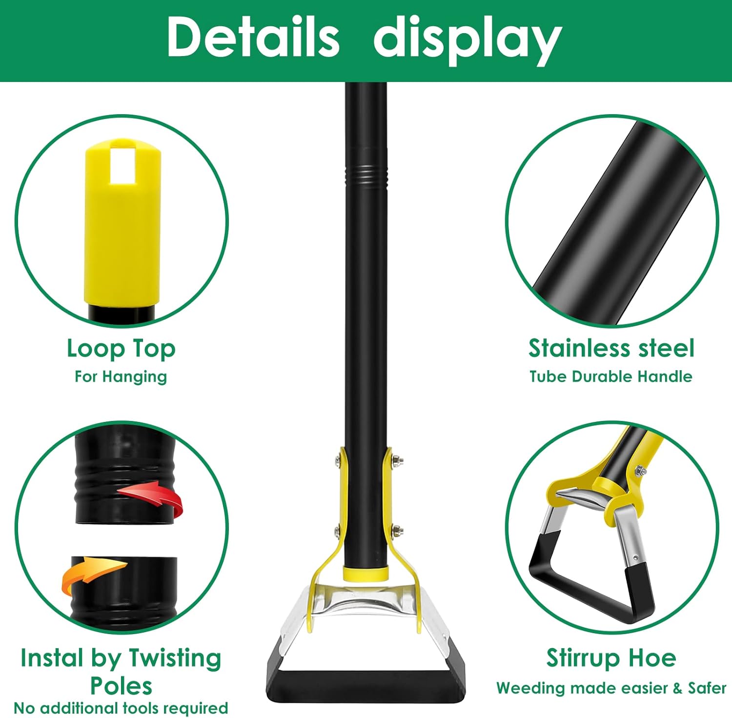 Parts List:1 x Head3 x PoleOR1 x Head4 x PoleProduct Specification:Why choose our garden hoe tool?1.Wide and incisive Blade2.Ergonomic Long Handle3.Safer and More Efficient for Weeding4.Sturdy Structure, Excellent PerformanceNo more remove weeds with your hand!This is a great scuffle hoe to remove weeds with ease in your garden.Key Features:Clean Cutting: The flexible triangular metal head moves easily under the weeds, cutting through the roots below the surface and leaving a nice weed-free area.Ergonomic Handle: Ergonomic non-slip handle can reduce hand stress and fatigue. Comfortable grip allows you to weed for a long time without soreness.Incisive & Stable: Wide and incisive metal blades can fast remove thick weeds from hard soil and landscape rocks, and solid metal ends won't bend or wobble.Specification:Product Name: Garden Hoe ToolTexture: stainless steelColor: as shownLength (optional):1.2m/3.94ft, 1.6m/5.25ft (handle + hoe)Hoe size: 14.5 x 7.6 x 3 cm/5.7 x 3 x 1.2 inchApplication: weeding, trenching, seeding, planting, soil loosening, etcNote:1.There may be slight differences between the picture and the actual color of the commodity. We will try our best to show you the exact color.2.Please allow slight dimension difference due to manual measurement.