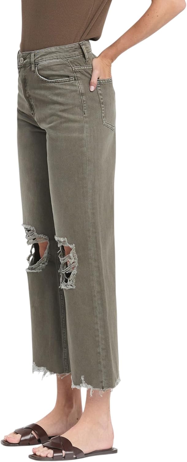 Step up your style with our Super High Rise 90s Vintage Crop Flare Jeans. Made of non stretch denim, they have a flattering super high rise waist and a sophisticated 90's vintage vibe. With distressed details, frayed hems, and a cropped flare cut, these versatile jeans bring a touch of edge to any wardrobe.