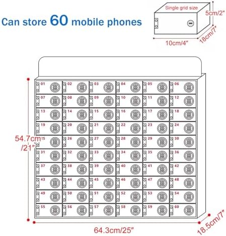 The Cell Phone Locker is the ideal solution for secure device storage, designed with high-quality acrylic for durability and style. Available in sizes from 4 to 60 doors, this versatile locker is suitable for personal use or communal spaces like schools, offices, gyms, and events. Its lockable design ensures that smartphones and other devices remain safe from theft and damage, providing peace of mind in any setting. Perfect for a variety of environments, the locker can be easily mounted on the wall or used as a freestanding unit, seamlessly integrating into your décor while maximizing space. The sleek rectangular design not only enhances the aesthetic appeal of your area but also keeps devices organized and accessible. Every unit includes a cell phone storage cabinet and all necessary installation accessories for a quick and easy setup. When making your selection, please choose the size that best meets your needs. The image provided illustrates a model with 12 doors, and the actual size will correspond to your chosen option. This Cell Phone Locker promotes a responsible tech environment by keeping devices secure and organized. Elevate your space with a storage solution that combines convenience and security, making it an essential addition to any location where technology is used. Choose the Cell Phone Locker for a practical and stylish way to protect your devices.
