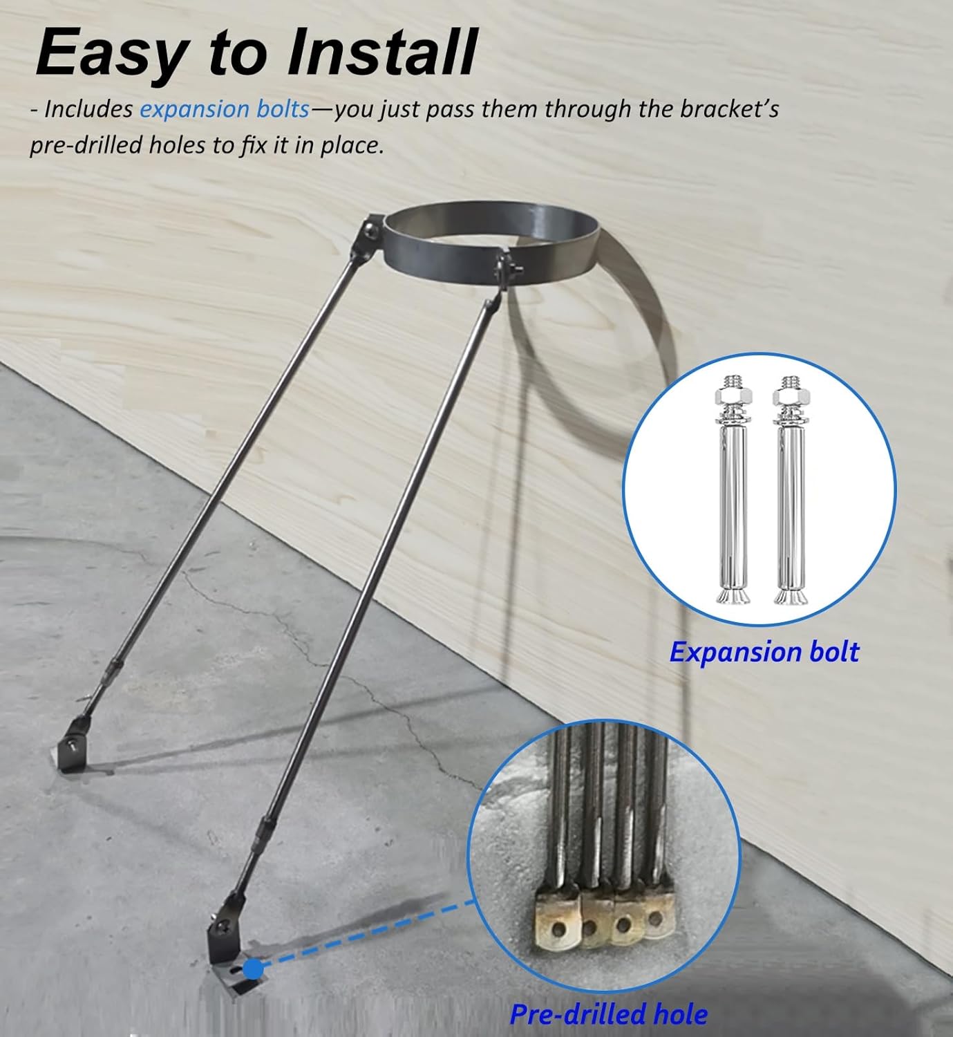 Worried about the impact of strong winds or heavy snow on your chimney flue? Our premium chimney support bracket is designed to keep your chimney stable and secure, ensuring it withstands even the harshest winter storms. Crafted from durable stainless steel, this chimney bracket not only provides superior strength but also offers resistance to extreme weather conditions. Its sleek silver finish complements any architectural style, making it a practical and aesthetic choice for your home. **Specifications:** - **Material:** Stainless Steel - **Color:** Silver - **Support Pole Length:** 120cm (47 1/4") - **Compatible Round Hoop Diameters:** 80mm (3 1/8") to 250mm (9 7/8") **Product Features:** - **Robust Construction:** Built to last, our chimney bracket is ideal for maintaining the integrity of your chimney system. - **Versatile Installation:** Easily mount it on the floor or wall, allowing for flexible placement options. - **Weather Resistant:** Designed to endure harsh environmental conditions, ensuring reliable performance year-round. - **User-Friendly:** Quick and straightforward installation process with included screws for your convenience. - **Low Maintenance:** Enjoy peace of mind with a product that requires minimal upkeep, providing long-term value. **Package Contents:** - 1 x Pipe Support Bracket (with Screws) **Warm Prompt:** Please note that variations in display and lighting may cause slight color differences between the actual product and the images shown. Additionally, manual measurements may result in minor size deviations, but these will not affect functionality or performance. Invest in our chimney support bracket today and ensure your chimney is equipped to handle whatever Mother Nature throws its way!
