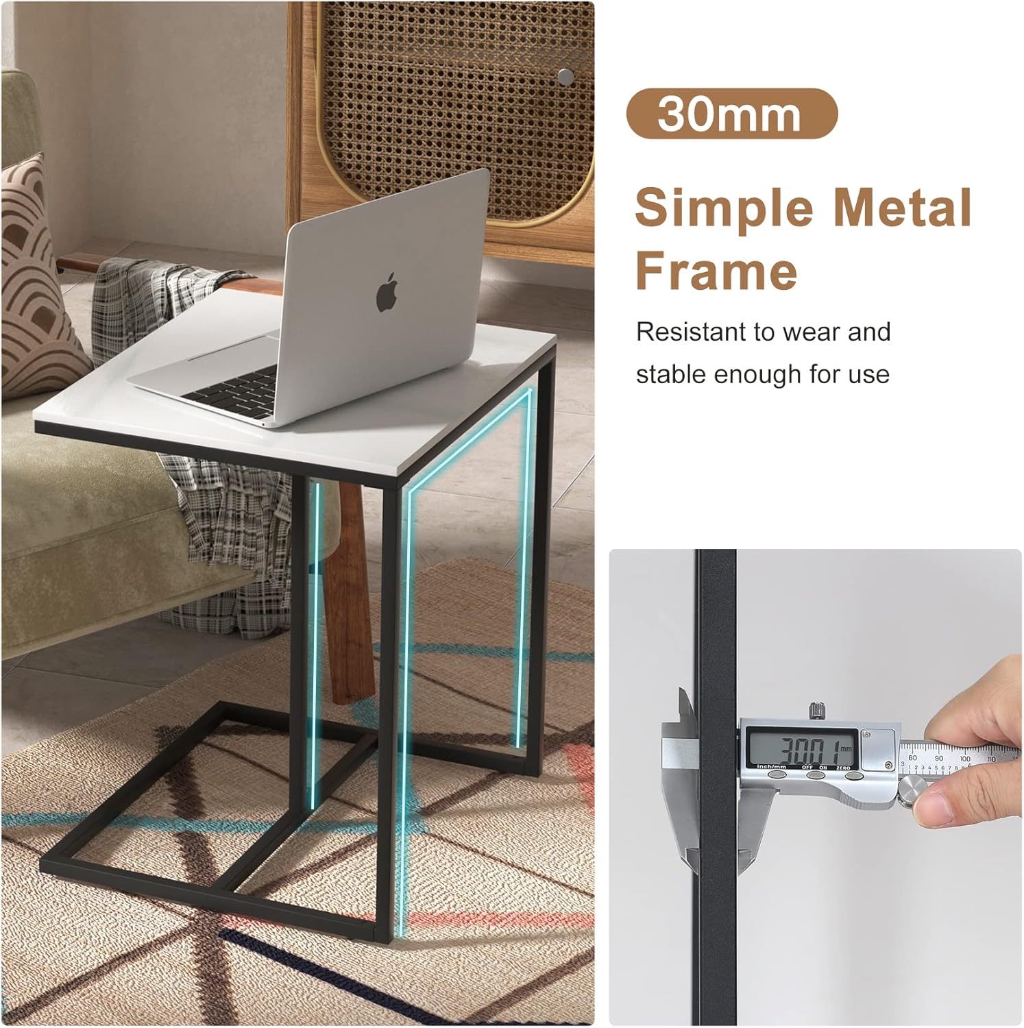 This side end table with a simple fashion look and delicate details, adding contemporary style and personality to any space. Sintered stone tabletop combines with metal frame, classic yet unique, with the features style and functionality. Material: Sintered Stone + Metal IronColor: Black + WhiteNet Weight: 6.27kg/ 13.82 lbsMax Load Capacity: 30kg/ 66 lbsProduct Dimension: L * W *H 45x39.5x52.5cm/ 17.72x15.55x20.66 inchPackage Included:1 x C Shaped End Table1 x Screw Accessories1 x Instruction GuideNote-- Carefully wrapped in the box to ensure safety and avoid damage in the transit.- Please prevent children from shaking table, or they will fall down and the children get injuries.