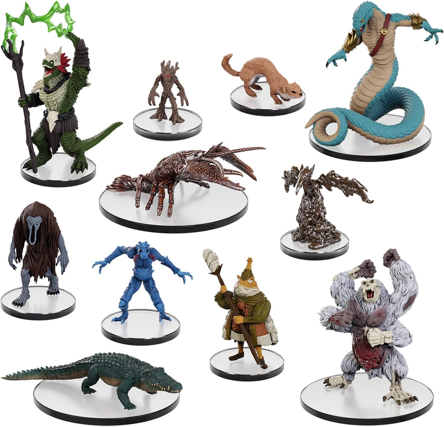 Are you brave enough to explore murky swamps and haunted bogs? These places are home to some of Dungeons & Dragons' most iconic monsters, including the corrupted yuan-ti, ancient mummies, fierce bullywugs, and ghastly bodaks. D&D Icons of the Realms: Ghost Light – 10 Ct. Booster Brick features these and more creatures. Collect all 46 pre-painted D&D miniatures in this set of randomly sorted monsters. This set is perfect if your adventures take you deep in a haunted bog or into the fallen ruins of an ancient civilization. This release comes in a new product configuration, the 10 Ct. Booster Brick. This configuration features 10 Boosters, each containing 4 miniatures.