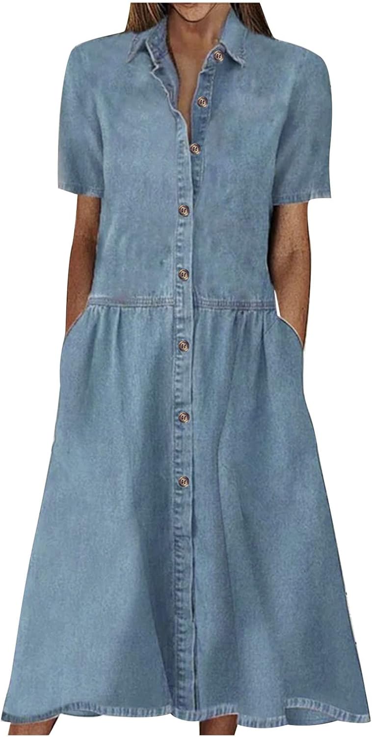 | Lining Description | Material: Womens denim dress is made of very soft Polyester and Cotton blend fabric, Super light weight with good washability and wearability, easy to dry after washing, no deformation, no fading and shrinkage, comfortable and breathable. A wardrobe must-have clothing. Jean shirt dress was a nice gift for women, wife, mama, mom, daughter, aunt, cousin, grandmother, teacher, friend, girlfriend, sister to show your deep love for Her. Polyester |
