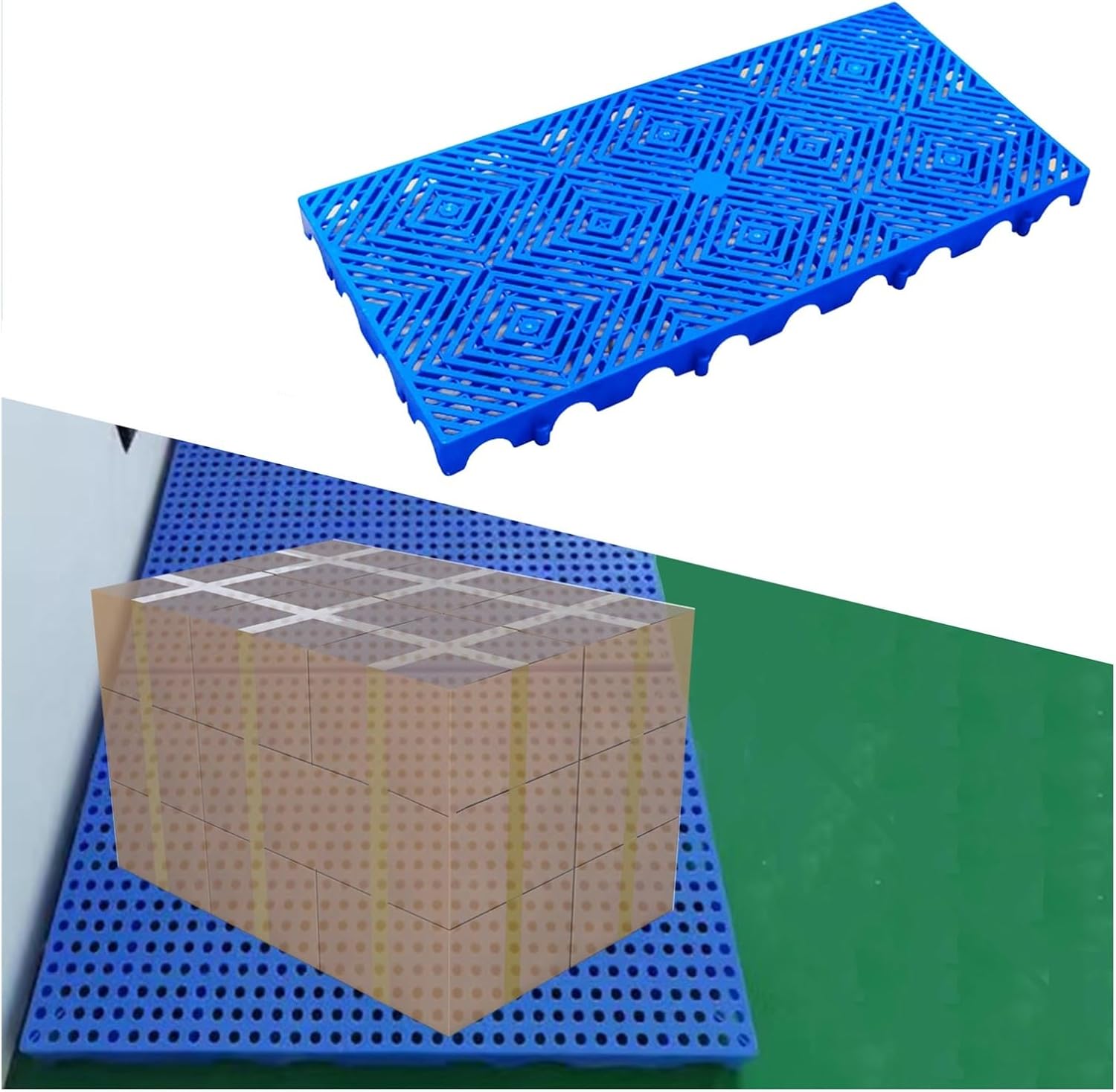 Brand : XPLKQXEFeature:The plastic pallet is made of HDPE material, and the surface is evenly covered with anti-skid particles, which has good anti-skid properties.The warehouse storage pads are brightly colored and have reinforced ribs at the back, which not only improves the stability of the plastic boards but also increases the load-bearing capacity of the pads.The grid platform pad is equipped with multiple drainage holes to effectively clear the accumulated water inside. Comes with splicing buckles, easy and convenient splicing, and can be used in a wide range of installations.Name: Breathable Grid Ventilation Pallet/Lightweight Floor Pallets/Polyethylene Pallet / Isolation Platform Pad Board/HDPE Breathable Grids Article Racks/Plastic Medium Size DisplayMaterial: HDPE materialColor: BlueDimensions (L x W x T): 39.4x19.7x2in/100x50x5cm, 39.4x23.6x2in/100x60x5cm , 39.4x31.5x2in/100x80x5cmCleaning: Rinse directly with waterFunction: Warehouse storage, supermarket displayUsage Scenarios: Warehousing, supermarkets, turnover, kitchen, garages, outdoor closets, storage roomsPacking List:1/2/4/6/8/10pcs x Plastic palletNotice:If you have any questions after receiving the package, we will resolve it for you in time
