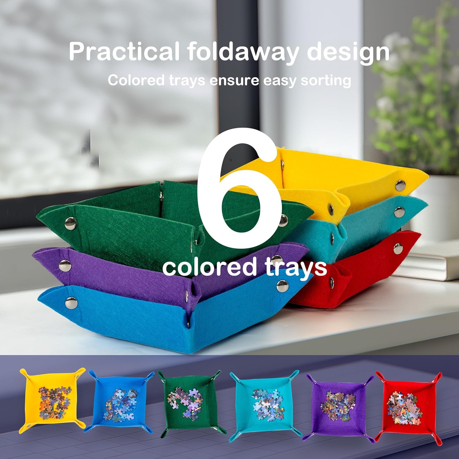 • Multi-Color Sorting System - Ensures easy sorting of puzzle pieces by color with 6 collapsible color-coded trays to simplify your puzzle-solving and stores puzzle pieces neatly for future play.
